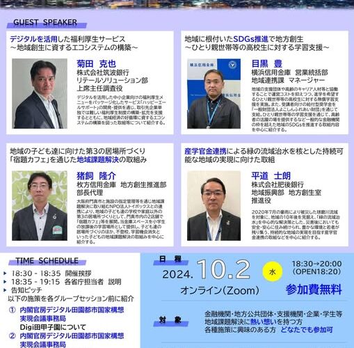 【対象】 テーマに関心のある方ならどなたでも参加可能! 官・金・民・学など様々な分野で神奈川を中心に活躍されている方々をはじめ、全国の方も大歓迎です。 *耳だけ参加や途中入退室も可能ですので、お気軽にご参加ください。